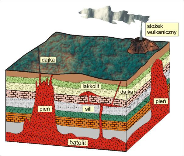 Časť magmatických pochodov, odohrávajúcich sa pod povrchom Zeme, sa nazýva plutonizmus. Proces rozpínania magmy pod zemským povrchom sa nazýva intrúzia. Magma počas svojho podpovrchového pohybu sa dostáva do chladnejších časti zemskej kôry a postupne tuhne. Vytvára pritom rozličné typy intruzívnych magmatických telies.